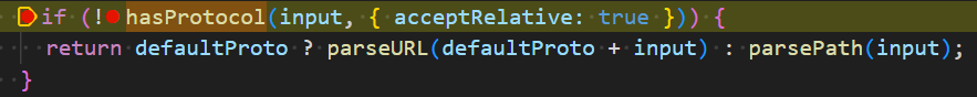 isExternal이 true이기 때문에 이 if문 내부로 들어가는데 !options?.external의 값은 false이므로 바로 다음의 if문은 실행이 되지 않고 문제가 되는 함수인 parseURL의 반환값이 protocol 변수에 들어간다.