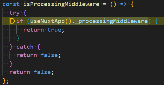 inMiddleware 변수에 isProcessingMiddleware()함수의 반환값을 저장하는데